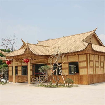 竹屋一般主體部分為一層式的竹結(jié)構(gòu)房屋。主要用于居住,如竹別墅,竹舍等,還可用于造價低廉,美觀大方的茶餐廳及竹店鋪等。竹屋是低碳概念經(jīng)濟房屋,休閑舒適,竹屋以其獨特亮點的竹木建筑形式,正成為新興休閑度假場所規(guī)劃的首選。