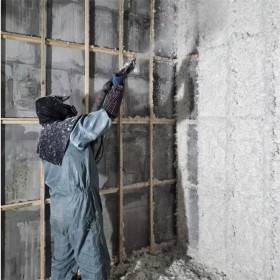 2、無機(jī)纖維噴涂施工:按要求一次噴涂到預(yù)定厚度。