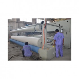 用針沖壓產(chǎn)生的纖維面上突出的纖維,在澆注混泥土?xí)r被插入,形成一體結(jié)構(gòu)物的震動或者沉降都不會引起防水材料和結(jié)構(gòu)物的分離,能夠繼續(xù)維持防水性能。