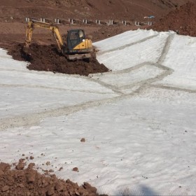 (1)鈉基膨潤(rùn)土復(fù)合防水墊對(duì)鋪設(shè)基面及回填覆蓋土的要求比土工膜低,一般場(chǎng)合經(jīng)打夯壓實(shí)后都可滿足鋪設(shè)要求,既可降低鋪設(shè)成本又能加快施工進(jìn)度。
