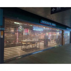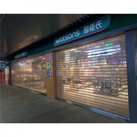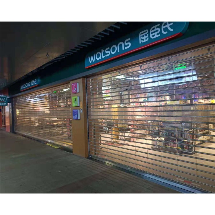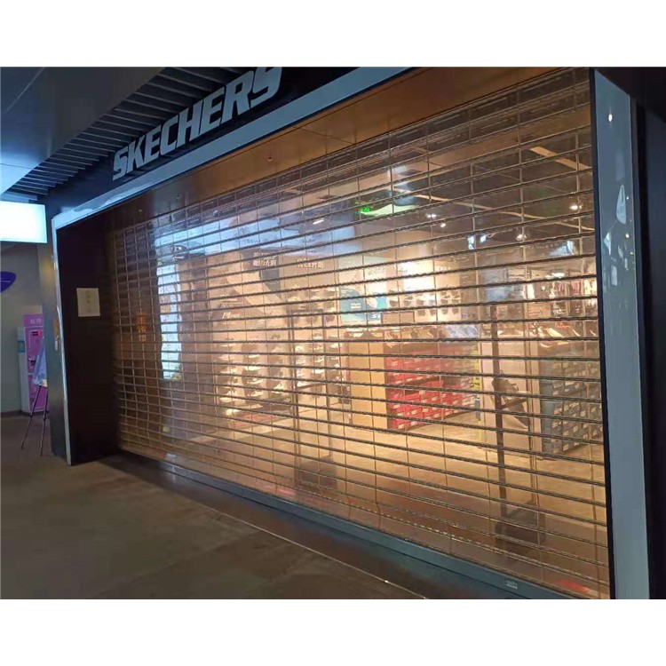 詳細(xì)信息 水晶卷簾門,主要用于商場(chǎng),機(jī)場(chǎng)高檔商鋪,店面使用。高透明PC板簾片中間穿插不銹鋼管材,或采用鋁合金條穿PC板,整體透光美觀,深受廣大消費(fèi)者喜歡。