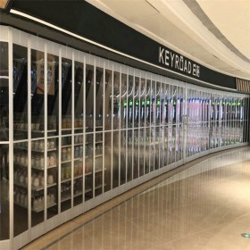 水晶卷簾門,主要用于商場(chǎng),機(jī)場(chǎng)高 檔商鋪,店面使用。高透明PC板簾片中間穿插不銹鋼管材,或采用鋁合金條穿PC板,整體透光美觀,深受廣大消費(fèi)者喜歡。