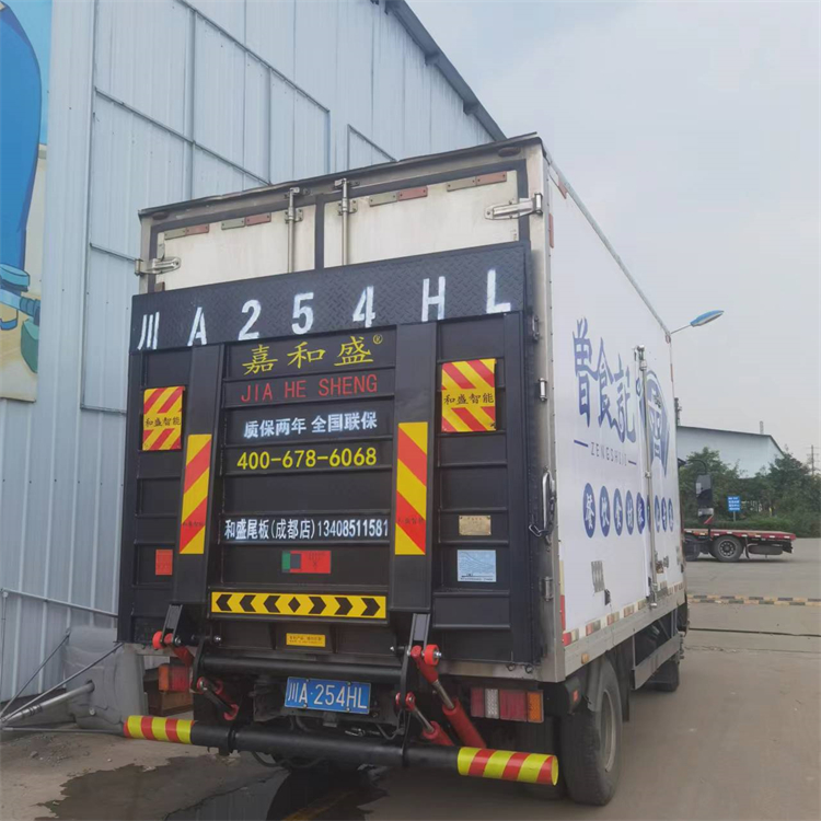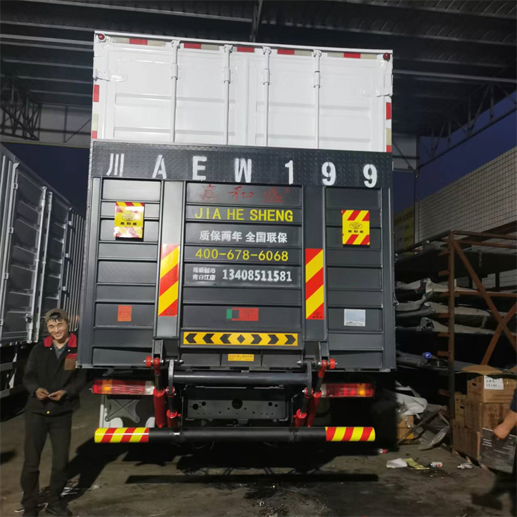 加裝了尾板的廂式車在裝卸貨物時(shí)可不受場(chǎng)地、設(shè)備及人力限制,即使只有一人也可完成貨物裝卸,