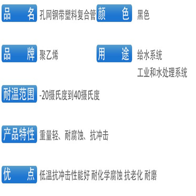 產(chǎn)品參數(shù) 產(chǎn)品名稱:  鋼絲網(wǎng)骨架PE鋼帶聚乙烯塑膠復(fù)合管 給水管 HDPE高密度排水管