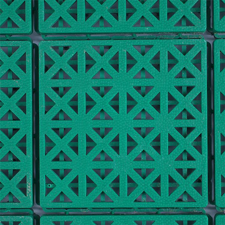 6、耐用性:該產品所用原料聚丙?。≒P)為高強度材料,加入具有抗紫外線輻射、抗氧化、抗寒等原料的改性聚丙稀,使該產品具有耐壓、耐沖擊、耐高低溫、使用壽命長等優(yōu)點。耐候性極高,不怕日曬高溫、雨淋潮濕、冰雪嚴寒、永不翹曲剝落變形。沒有氣候地域限制,雨后場地不積水。