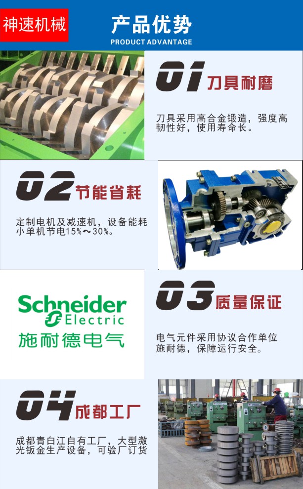 我司生廠的撕碎機覆蓋廢舊金屬、輪胎、塑料、木材、玻璃、紙質(zhì)品、電線電纜、家電外殼等物料的回收破碎和分揀領(lǐng)域。單機產(chǎn)品主要有雙軸撕碎機、單軸撕碎機、廢鋼破碎機、磁選機、渦電流分選機等;生產(chǎn)線包括:廢舊汽車破碎回收生產(chǎn)線、廢舊輪胎破碎回收生產(chǎn)線、廢舊塑料破碎清洗回收生產(chǎn)線、廢舊家電破碎回收生產(chǎn)線、固體廢物處理生產(chǎn)線。
