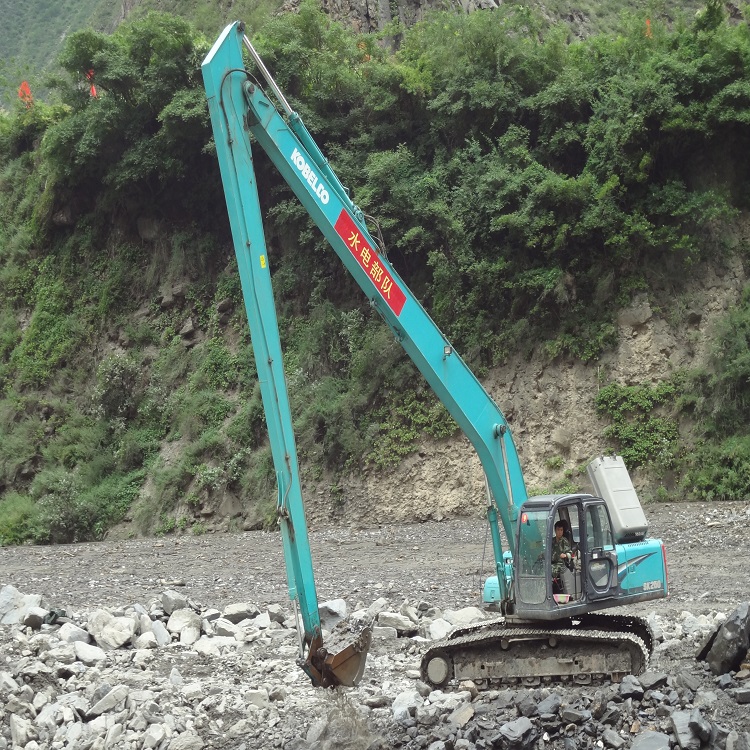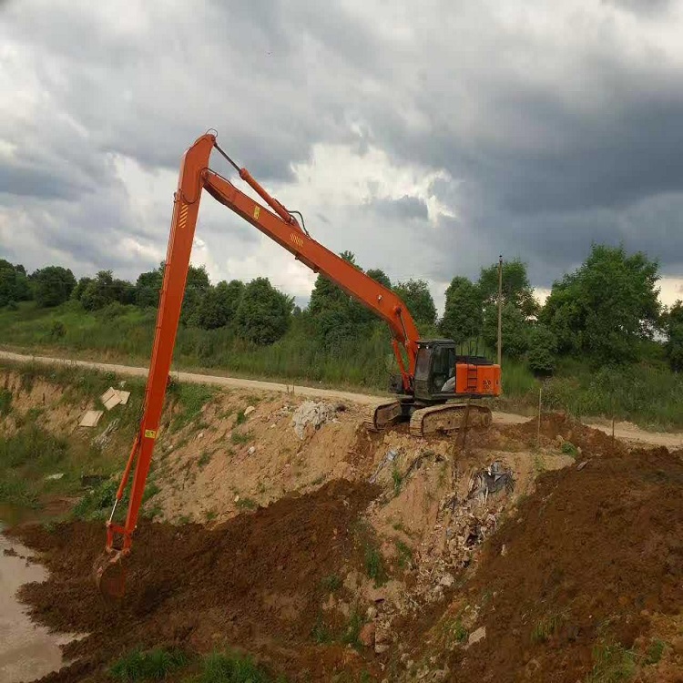 二段式加長(zhǎng)臂挖機(jī)可加長(zhǎng)到13米至32米,它主要適用于長(zhǎng)距離的土石方開挖和深塹土基的挖土作業(yè),河道的清淤泥挖掘作業(yè),遠(yuǎn)距離的混凝土澆筑作業(yè),地鐵深基坑的開挖等特殊作業(yè)環(huán)境。其還有一個(gè)用途是適合高度的房屋拆除作業(yè),所以又名加長(zhǎng)臂拆除機(jī)。