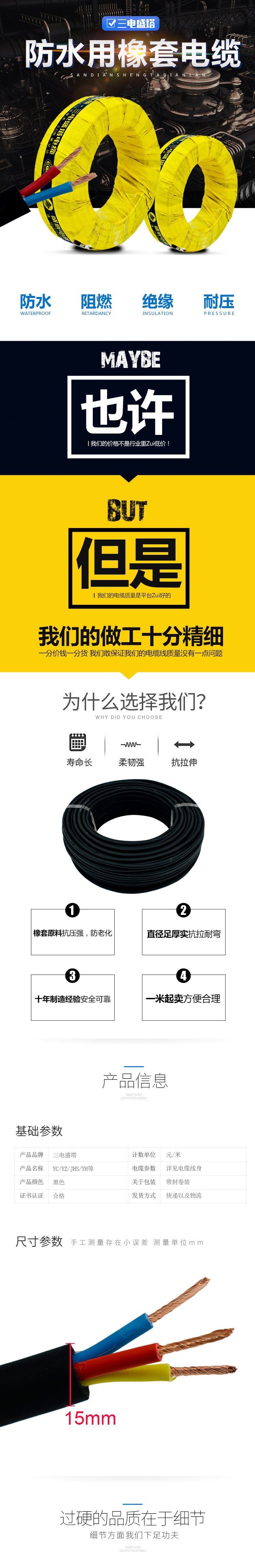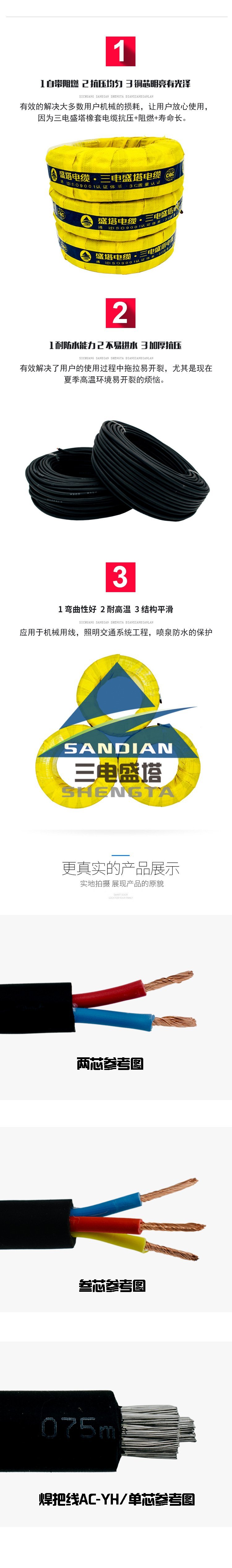 三電盛塔 橡套軟電線電纜YC YZ YZW YCW 2*1.0/1.5/2.5/4/6/10/16
