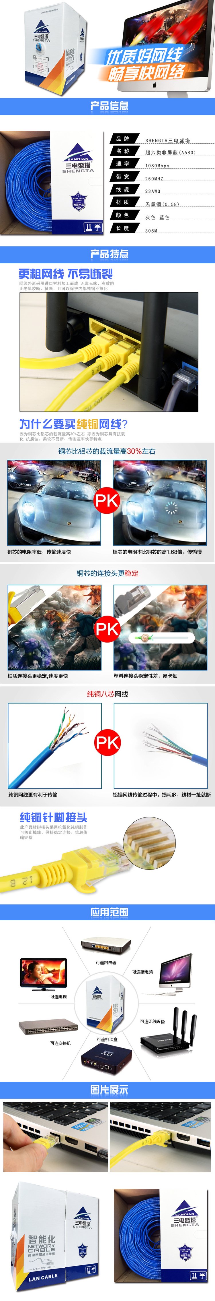 三電盛塔網(wǎng)線 超六6類 UTP6E A680 無氧銅國標雙屏蔽網(wǎng)絡(luò)線