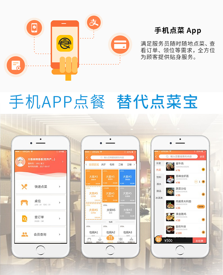 智能手機(jī)移動(dòng)點(diǎn)餐終端,金額匹配自動(dòng)完成結(jié)賬。