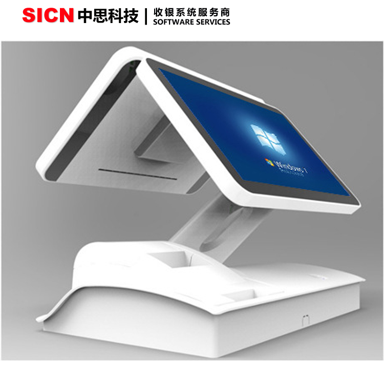 零售店收銀系統(tǒng) 雙屏收銀一體機(jī)打印收銀機(jī) 掃碼刷卡收銀機(jī)自主收銀機(jī)