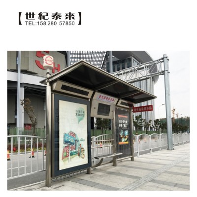 新款多功能造型公交站臺戶外鄉(xiāng)村候車亭燈箱廠家可定制不銹鋼材質(zhì)候車亭