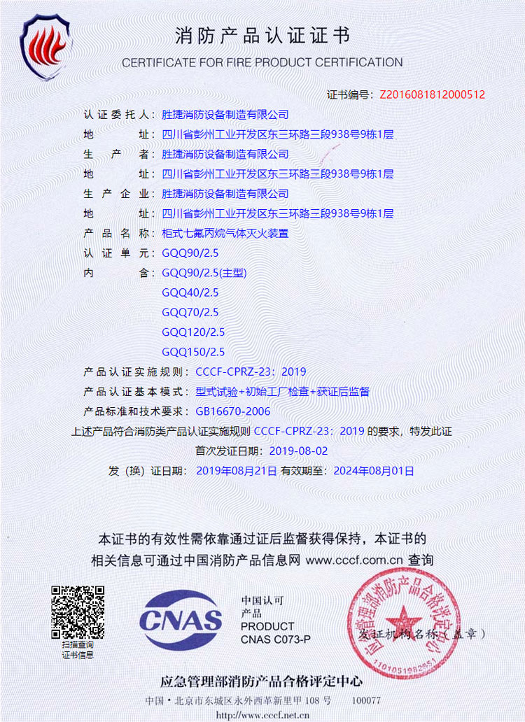 我司所有產(chǎn)品均已通過國家固定滅火系統(tǒng)和耐火構(gòu)件質(zhì)量監(jiān)督檢驗中心、應(yīng)急管理部天津消防研究所檢測中心和應(yīng)急管理部消防產(chǎn)品合格評定中心檢驗。順利通過ISO9001質(zhì)量管理體系認(rèn)證、ISO14001環(huán)境管理體系認(rèn)證。
