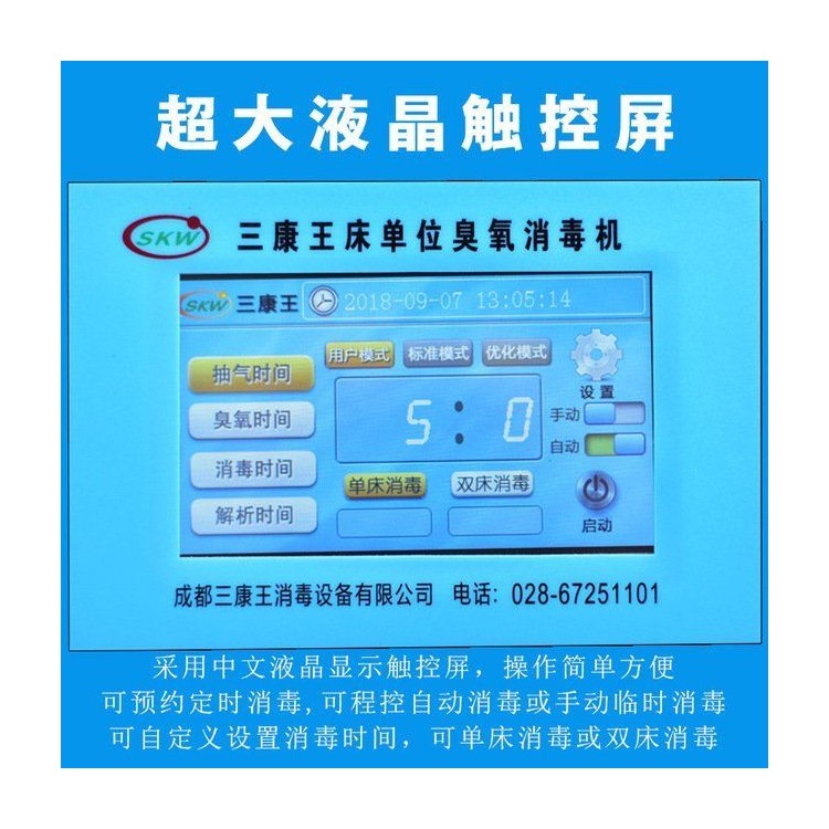 本機(jī)主要由不銹鋼搪瓷臭氧管、模塊高壓電源、解析裝置、氣泵、消毒氣管及接頭、消毒床罩及消毒袋、彩色中文觸摸屏操作運(yùn)行監(jiān)控系統(tǒng)、鈑金噴塑機(jī)殼組成。
