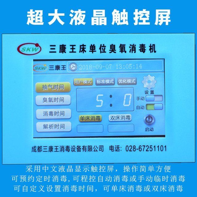 內(nèi)置四個(gè)程序(抽真空、充臭氧、消毒、解析),先通過(guò)氣泵將被消毒物品(如棉絮、枕芯、被褥、病服、床墊等,被消毒物品密閉于消毒罩或消毒袋中)中空氣抽出,近似真空狀態(tài)(以到達(dá)臭氧與被消毒物品的充分融合);然后由不銹鋼搪瓷臭氧管產(chǎn)生的臭氧氣體,通過(guò)氣泵將臭氧氣體充入消毒袋或消毒罩進(jìn)行消毒,消毒完畢后,再通過(guò)氣泵將被消毒物品中剩余的臭氧氣體抽出,通過(guò)解析裝置吸附掉剩余臭氧。本產(chǎn)品共有三組程序供客戶自由選擇,具有手動(dòng)和自動(dòng)功能,滿足客戶各種需要,更具人性化。