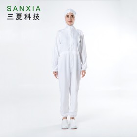 SANXIA/三夏科技包郵定制食品廠生產(chǎn)加工車間工作服連體套裝白色連帽男女通用工服