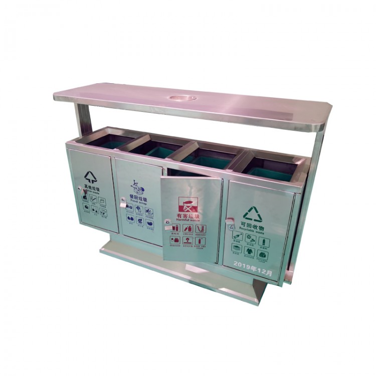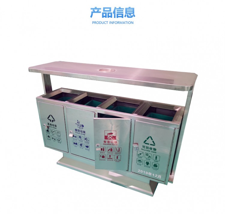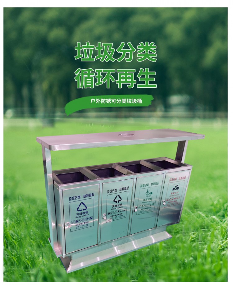 產(chǎn)品名稱:小區(qū)公園四分類果皮箱街道學(xué)校景區(qū)三分類不銹鋼環(huán)衛(wèi)垃圾桶廠家