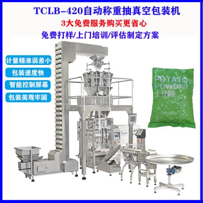 重慶土豆粉自動稱重抽真空包裝機(jī)TCZB-420全自動土豆粉稱重抽真空包裝機(jī) 支持定制