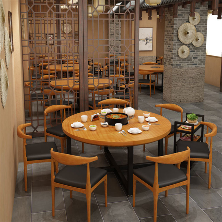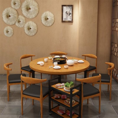 火鍋店家具 復(fù)古防火飾面板圓形火鍋桌