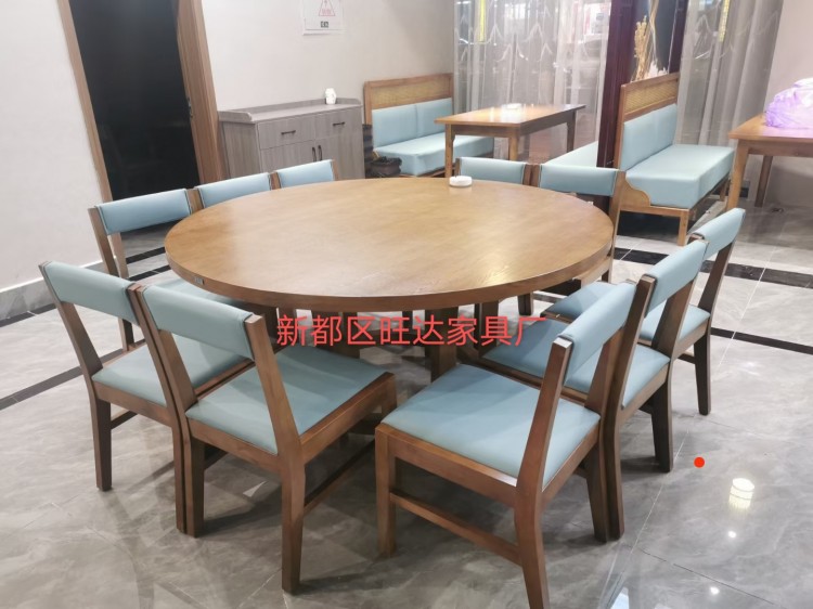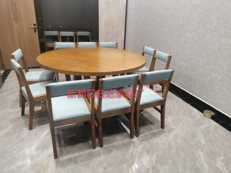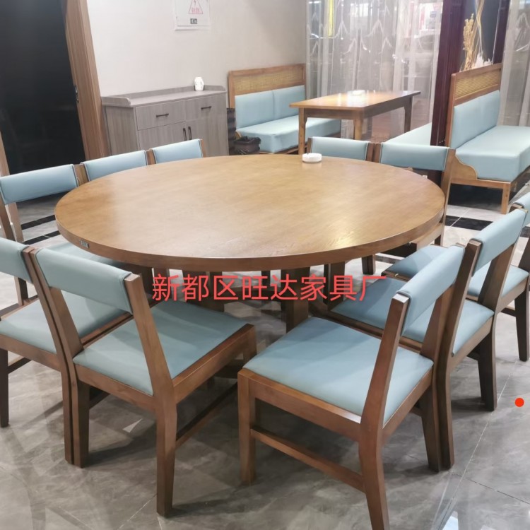實木中式餐桌椅組合 現(xiàn)代簡約實木圓形酒店餐廳 大圓桌