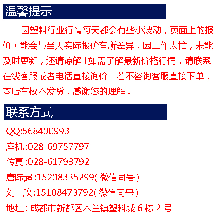 成都市萬(wàn)特塑料主營(yíng)以下塑料原料:POM塑料、PBT塑料、PA6塑料、PA66塑料、PMMA塑料、PC塑料、PC/ABS塑料、TPU塑料、PPO塑料、PPS塑料、TPEE塑料、POE塑料、EVA塑料、LCP塑料、PEEK塑料和普通塑料PE(聚乙烯) 、PP(聚丙烯) 、ABS塑料、有數(shù)百個(gè)型號(hào)現(xiàn)貨,可以當(dāng)天取貨(發(fā)貨)效率高,每周補(bǔ)倉(cāng),貨源充足有保障。我們提供優(yōu)質(zhì)的貨源及專業(yè)的售后跟蹤服務(wù),并可以做(美金)結(jié)算。