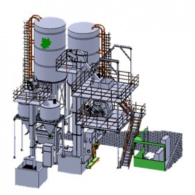 產(chǎn)品介紹: 大型干粉砂漿生產(chǎn)線: 主要是由原料儲(chǔ)存罐、螺旋輸送機(jī)、配料秤、斗提機(jī)、預(yù)混倉(cāng)、小料倉(cāng)、混合機(jī)、成品倉(cāng)、包裝機(jī)、除塵系統(tǒng)、二次混合機(jī)(勻料器)。鋼架平臺(tái)??刂葡到y(tǒng)組成。水泥、灰鈣等大比例原料通過(guò)螺旋輸送至配料秤自動(dòng)計(jì)量,利用斗提機(jī)提升至預(yù)混倉(cāng),使用預(yù)混倉(cāng)可使整體設(shè)備起到流水線的作用,無(wú)需停機(jī)加料,母料通過(guò)自動(dòng)計(jì)量(小料倉(cāng))自動(dòng)完成添加,經(jīng)混合后由包裝機(jī)包裝再由輸送機(jī)輸送。這套生產(chǎn)線和簡(jiǎn)易型/基本型相比不但具備了大料(水泥/粉煤灰)自動(dòng)進(jìn)料功能而且在儲(chǔ)罐上面安裝了料位自動(dòng)報(bào)警裝置,具有自動(dòng)送料、自動(dòng)配料(大料)、自動(dòng)包裝等特點(diǎn)。此設(shè)備投資高,一般產(chǎn)量可達(dá)50-200噸每天。操作工人5-8名、設(shè)備高度20-25米之間、設(shè)備占地面積200-300平方左右。