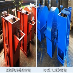 主要結(jié)構(gòu):TD型斗式提升機(jī)由運(yùn)行部分(料斗與牽引膠帶),帶有傳動滾筒的上部區(qū)段,帶有拉緊滾筒的下部區(qū)段,中間多段機(jī)殼,驅(qū)動裝置,逆止制動裝置等組成;
