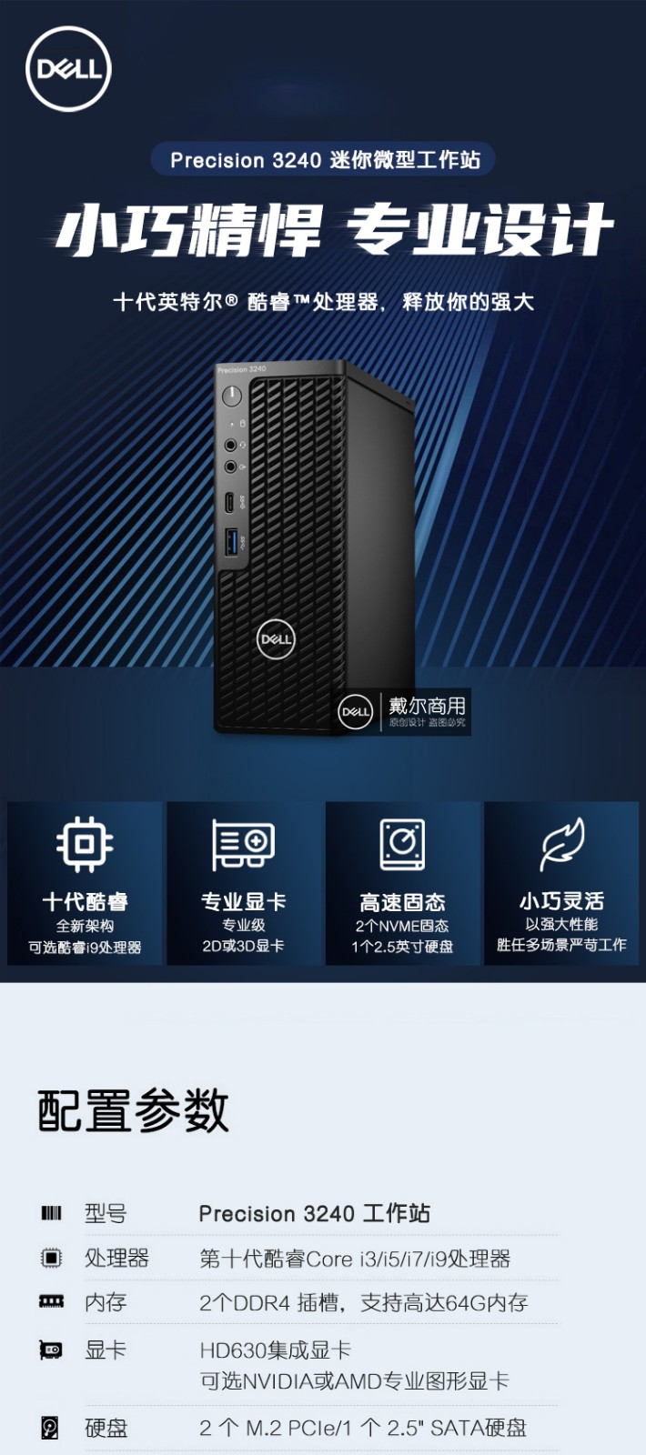 戴爾(DELL)Precision T3240塔式圖形工作站臺(tái)式電腦主機(jī)I9-10900/64G/1T固態(tài)/RTX3000 6G/3年專業(yè)服務(wù)