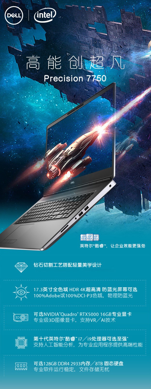 雅安市高端定制報(bào)價(jià)|戴爾Precision 7750 高效能辦公移動(dòng)工作站I9-10885H/32G/2塊512G固態(tài)/R0/6GVR圖形卡