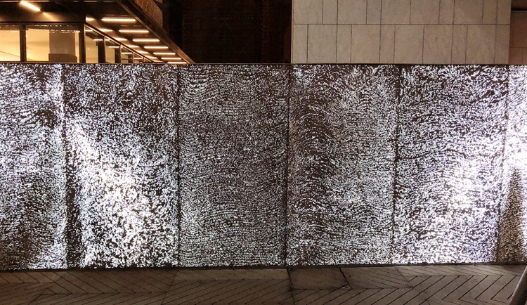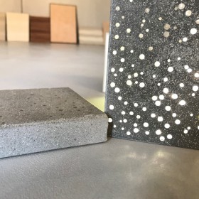 新石韻公司研發(fā)的透光混凝土產(chǎn)品利用光傳導(dǎo)原理,將光學(xué)導(dǎo)光材料和混凝土組合而成。無光源時(shí),產(chǎn)品以清水混凝土紋理作為飾面,而當(dāng)有光源融入時(shí),這種透光混凝土在光的映襯下,能夠透出點(diǎn)點(diǎn)星光,體現(xiàn)別樣美感。目前新石韻透光混凝土通常做成預(yù)制磚或墻板的形式,在光源的作用下,附近的物體可在透光板上顯示出輪廓或者陰影。