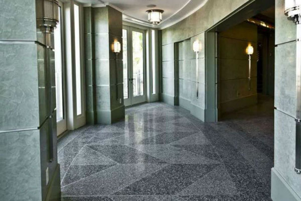 新型無機(jī)水磨石,普遍應(yīng)用于商場,超市,圖書館,酒店大廳,車站大廳,學(xué)校,醫(yī)院等,是新一代的綠色環(huán)保大使。