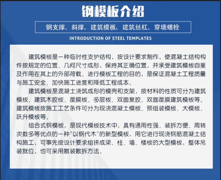 產(chǎn)品優(yōu)點(diǎn): 1、鋼模板表面平整光澤。 2、靈活性高,拼接簡(jiǎn)單,易組裝。 3、工藝要求,嚴(yán)中求嚴(yán),精益求精。