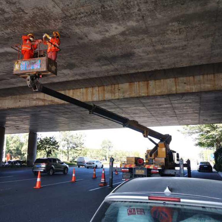 成都橋梁檢測(cè)作業(yè)車租賃 橋梁檢修施工車 詳細(xì)信息 吊籃式橋梁檢測(cè)車也稱折疊臂式橋梁檢測(cè)車(如圖1、圖2),其結(jié)構(gòu)小巧,受橋梁結(jié)構(gòu)制約少,工作靈活,既可檢測(cè)橋下也可升起檢測(cè)橋梁上部結(jié)構(gòu),可有線/無線操作,靈活方便,有時(shí)候還可以作為高空作業(yè)車使用,價(jià)格相對(duì)桁架式橋檢車低。其基本結(jié)構(gòu)充分體現(xiàn)了折疊臂式隨車起重運(yùn)輸車、高空作業(yè)車的特點(diǎn)。