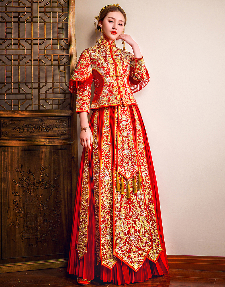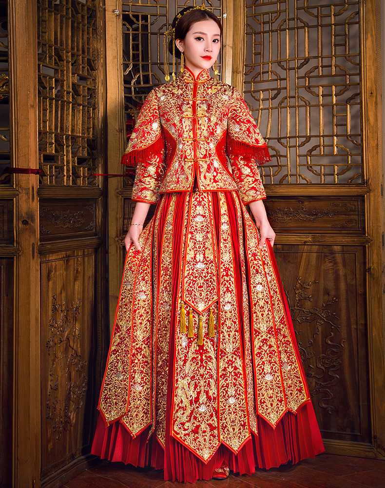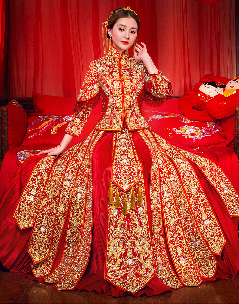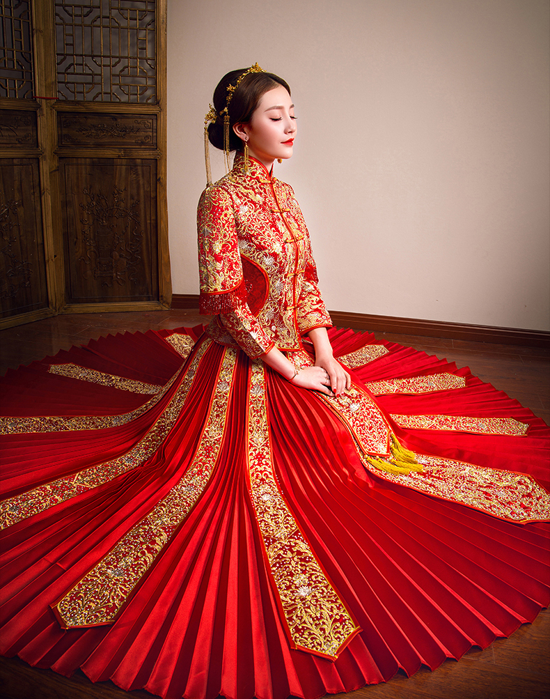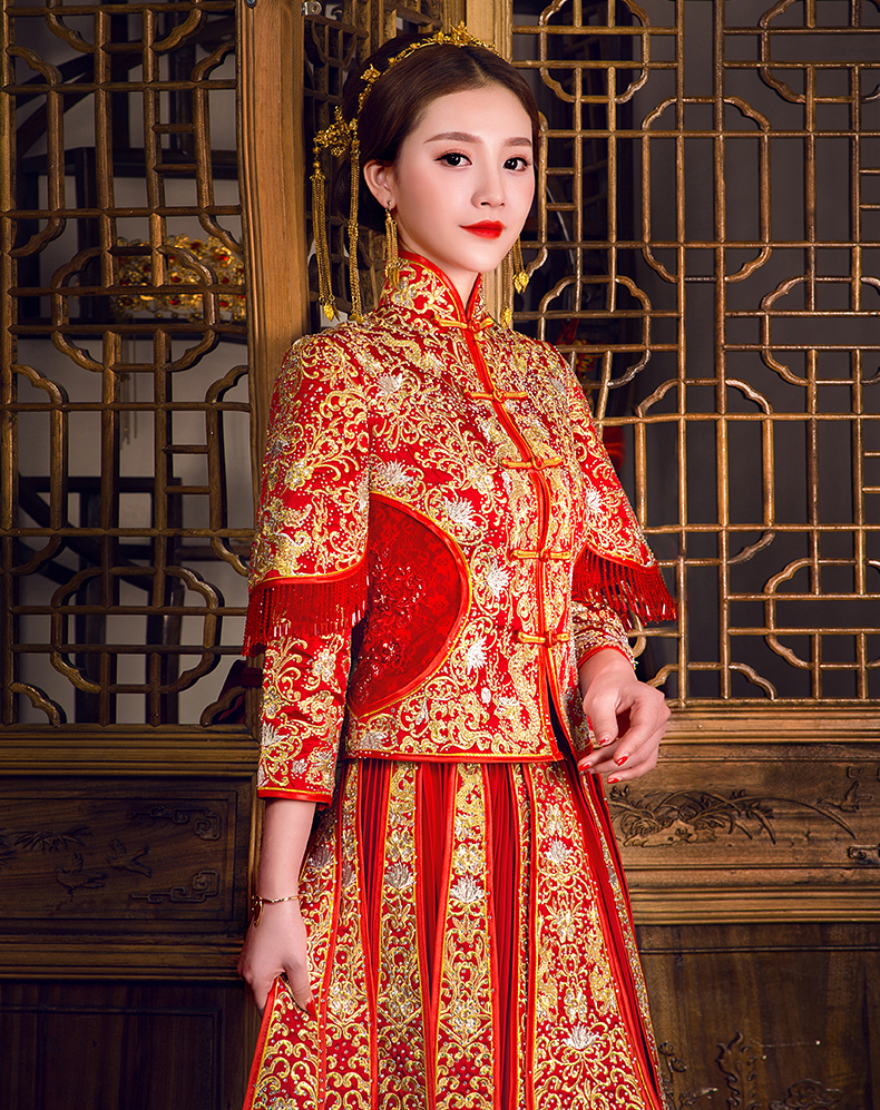 中式的華服是溫軟的綢緞,是藝術(shù)品般精美的刺繡,是精巧的立領(lǐng)和盤扣,是簡(jiǎn)潔典雅的直線裁剪。一件定制的中式嫁衣,不但是一件寄托幸福的婚禮服,更是一件有生命力的藝術(shù)品,值得代代珍藏。傳承,是中式嫁衣獨(dú)有的魅力。秀禾服,是嫁衣中獨(dú)有的中國(guó)情懷。