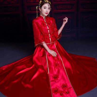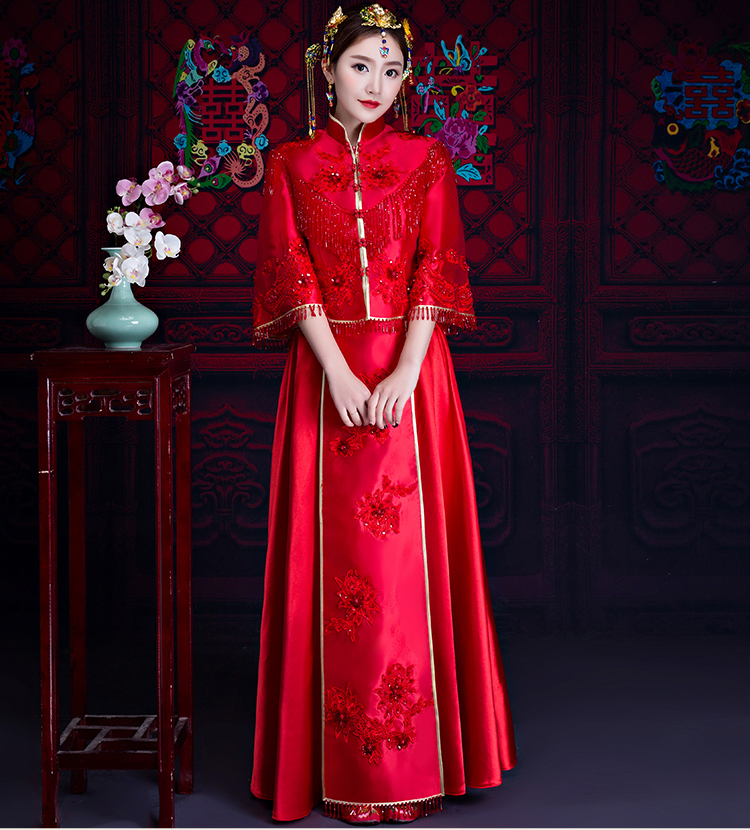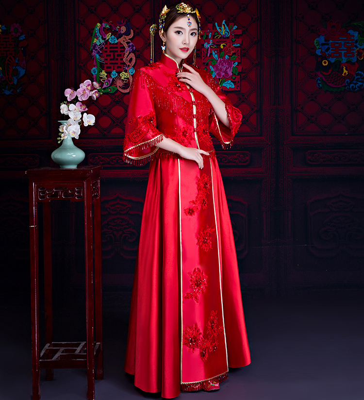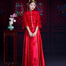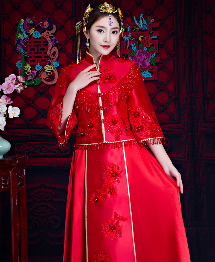 中式的華服是溫軟的綢緞,是藝術(shù)品般精美的刺繡,是精巧的立領(lǐng)和盤扣,是簡(jiǎn)潔典雅的直線裁剪。一件定制的中式嫁衣,不但是一件寄托幸福的婚禮服,更是一件有生命力的藝術(shù)品,值得代代珍藏。傳承,是中式嫁衣獨(dú)有的魅力。秀禾服,是嫁衣中獨(dú)有的中國(guó)情懷。