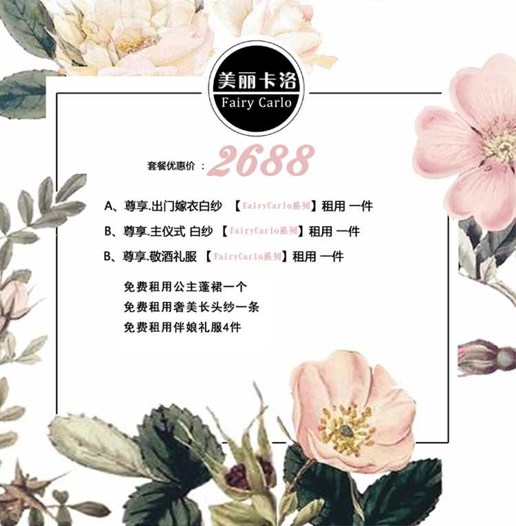 此內(nèi)容為新娘婚紗租賃套餐:包含出門(mén)紗,儀式紗,敬酒服,伴娘團(tuán)禮服