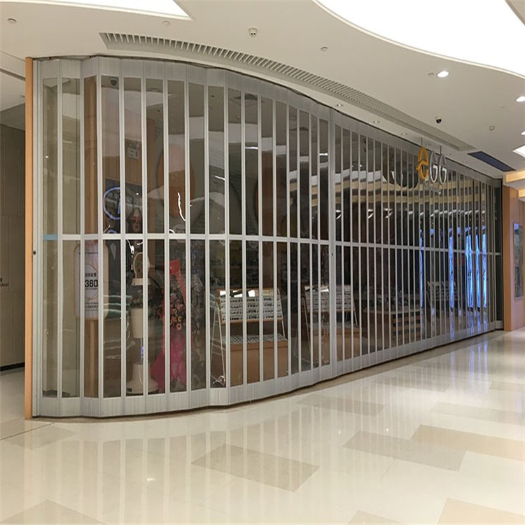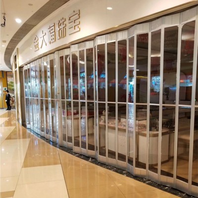 瀏覽次數(shù):21水晶推拉門(mén) 商場(chǎng)弧形手拉鋁合金折疊門(mén) 款式美觀 |