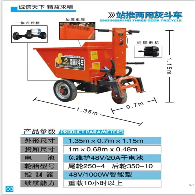 手推灰斗車掀自卸翻斗,速度快節(jié)省人工,簡(jiǎn)便,經(jīng)濟(jì)。此款車適用于建筑工地、室內(nèi)裝修CM05、養(yǎng)殖場(chǎng)、工廠等場(chǎng)所,運(yùn)輸沙子、水泥、土方、混凝土、建筑垃圾生活垃圾、養(yǎng)殖場(chǎng)動(dòng)物糞便、飼料等,體積小操作簡(jiǎn)單靈活,可原地360度轉(zhuǎn)圈,可進(jìn)入樓層、樓道、電梯、吊籃等各種狹小空間作業(yè)。