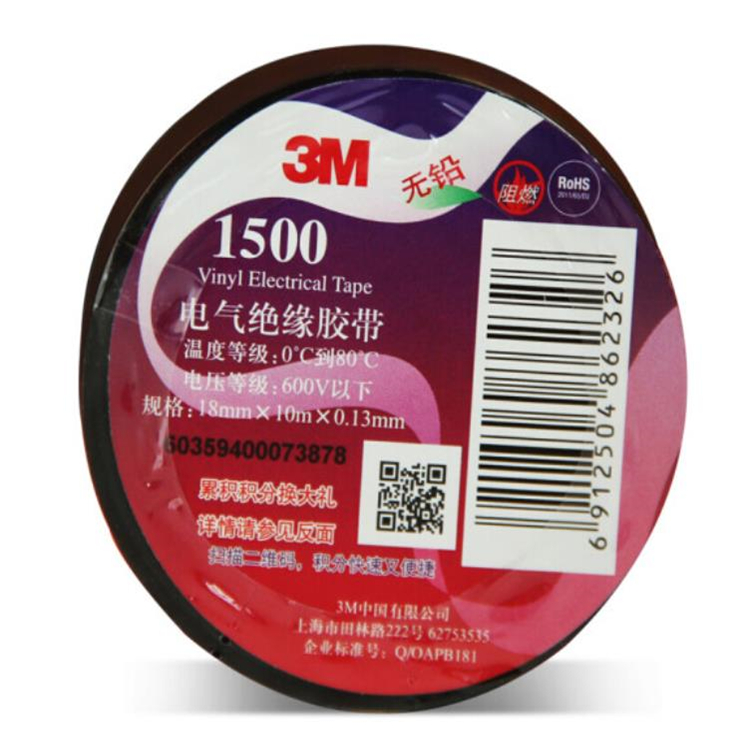 3M 1500# 電工膠帶 18mm*10m 10卷價(jià) 黑色