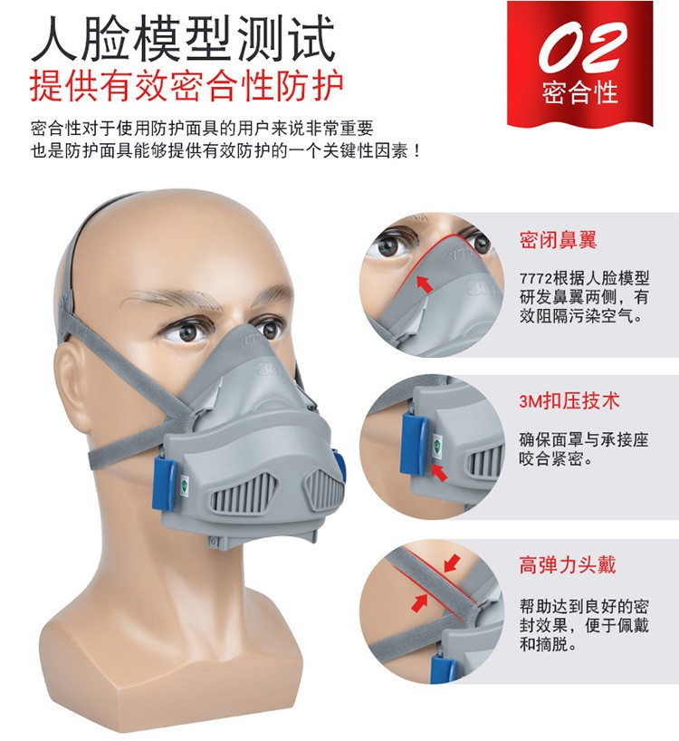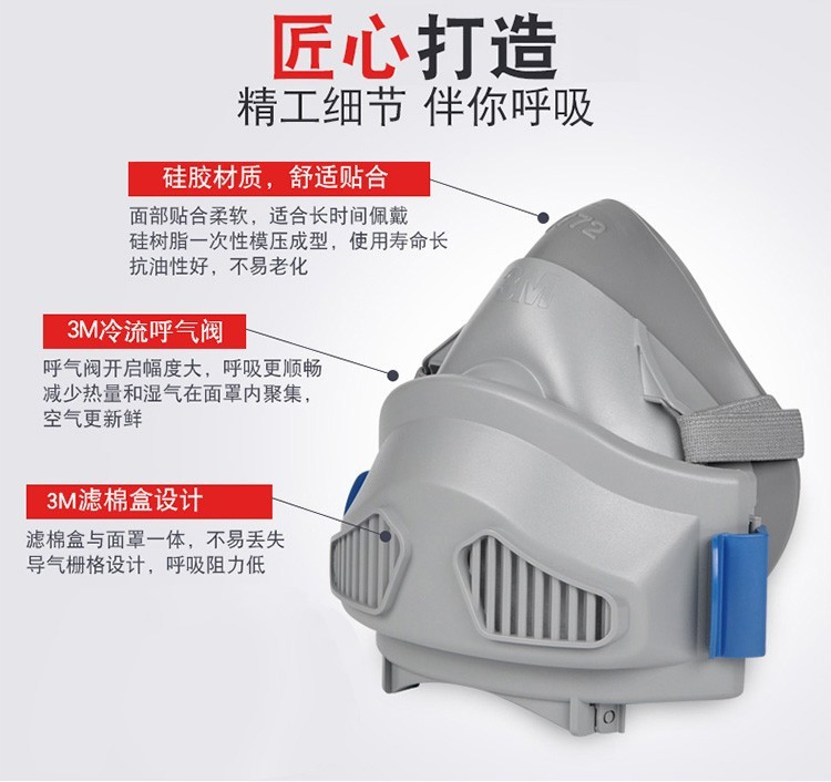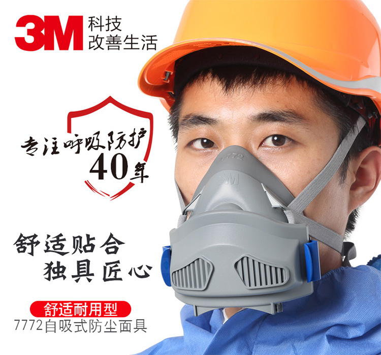 3M 7772舒適性硅膠防塵面具面罩工業(yè)粉塵打磨高效濾塵3m勞??谡郑ㄆ髽I(yè)定制) 3M7772面具