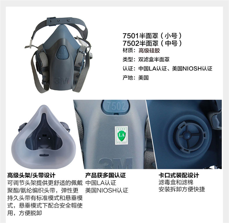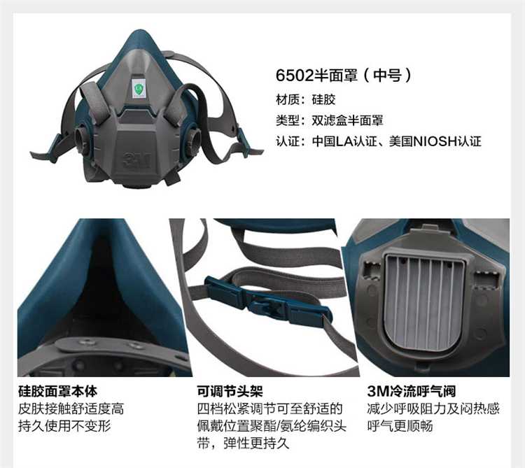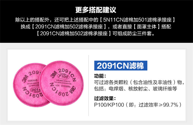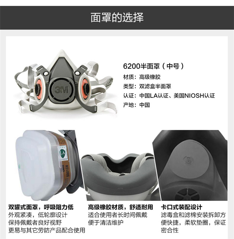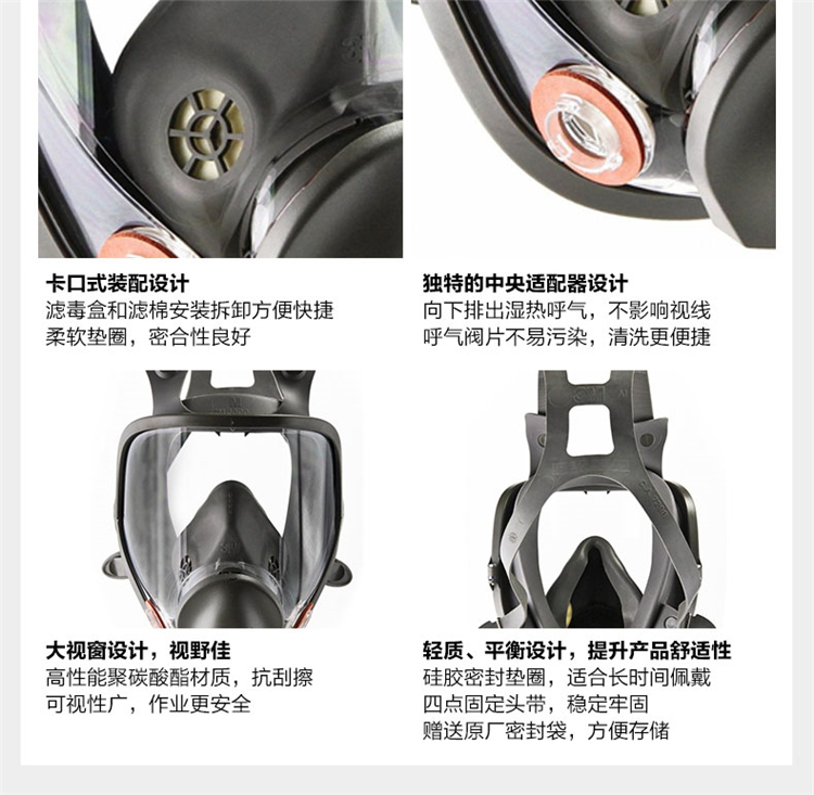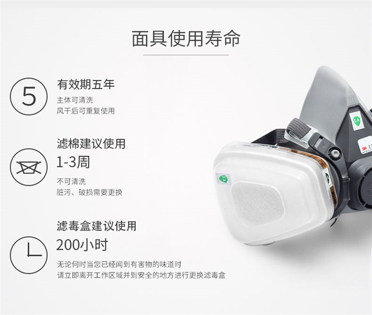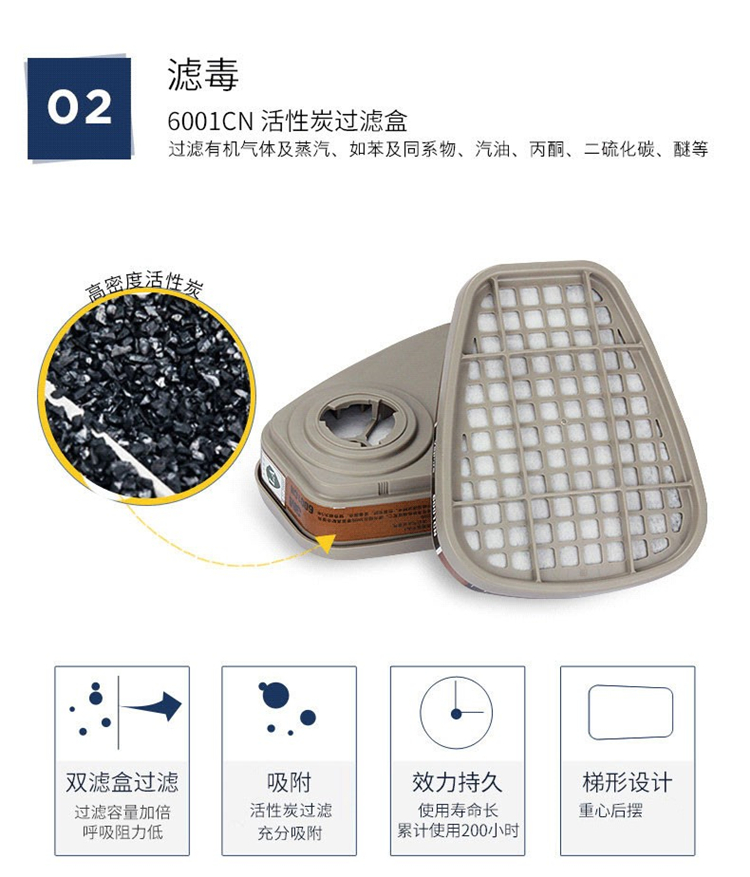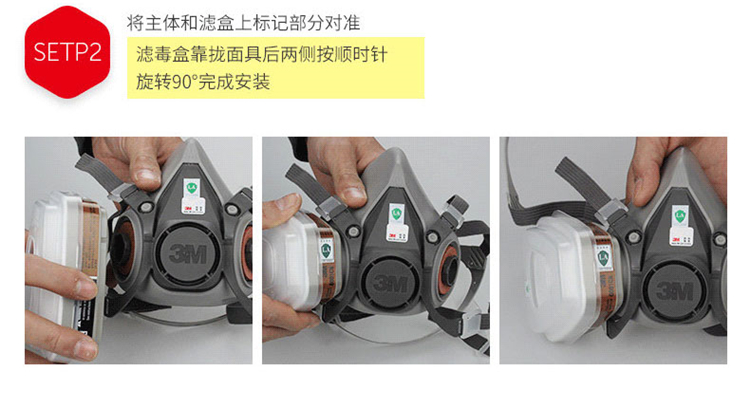 3M防毒面具6001/2/34/56 口罩防塵面具面罩 KN95防甲醛防霧霾 貨期15天 6002CN濾毒盒1對