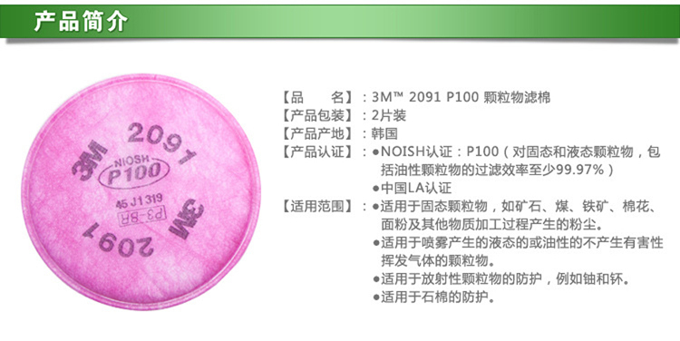 3M 2091CN 防塵濾棉 過濾棉防顆粒物有機(jī)氣體蒸氣異味油漆苯 貨期15天 2091CN