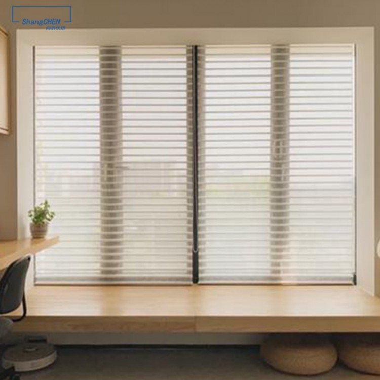 香格里拉簾 Shangri-la Blind 源于美國COMFERTEX。是一種柔合了電動窗簾、窗紗、百葉簾、卷簾于一身的嶄新設(shè)計。香格里拉簾是保持隱私及控制光線的不錯選擇。廣泛用于別墅、寫字樓、咖啡廳、西餐廳、酒店等場所。