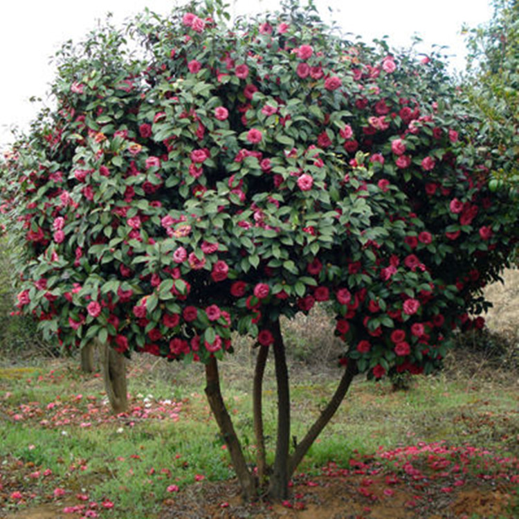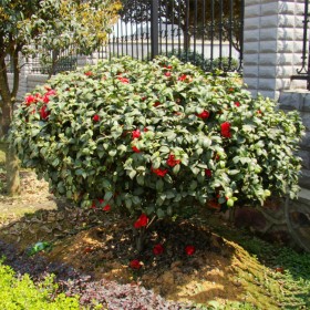 ③人工整形:山茶花還可以通過人工整形,供觀賞應(yīng)用,如:將山茶通過修剪整形,把樹冠整成球形、傘形、圓柱形樹冠,山茶墻樹式,平臥鋪地式,使山茶匍匐于地生長,鋪地而生 。墻樹在西歐北美應(yīng)用較多,即將山茶花植于向陽溫暖的墻面之外,附以攀登墻架,使山茶枝干順墻面而升,繼而覆蓋墻面,頗為壯觀。