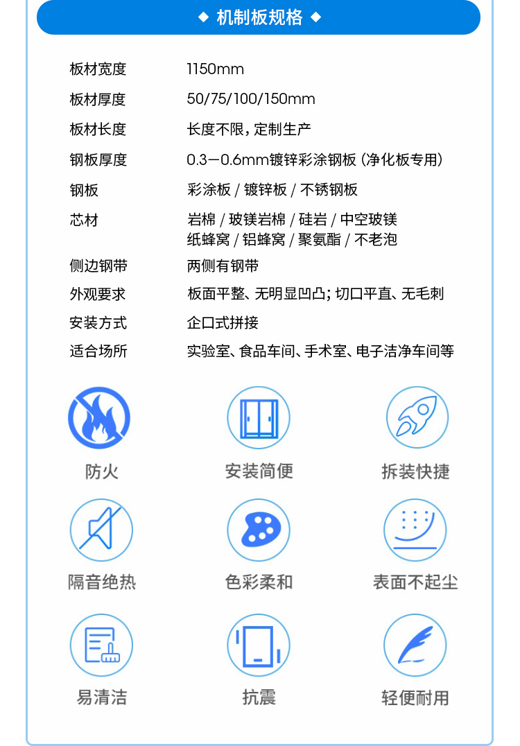 凈化硫氧鎂彩鋼板 夾心板 隔墻吊頂板 醫(yī)院實驗室電子廠房食品車間專用
