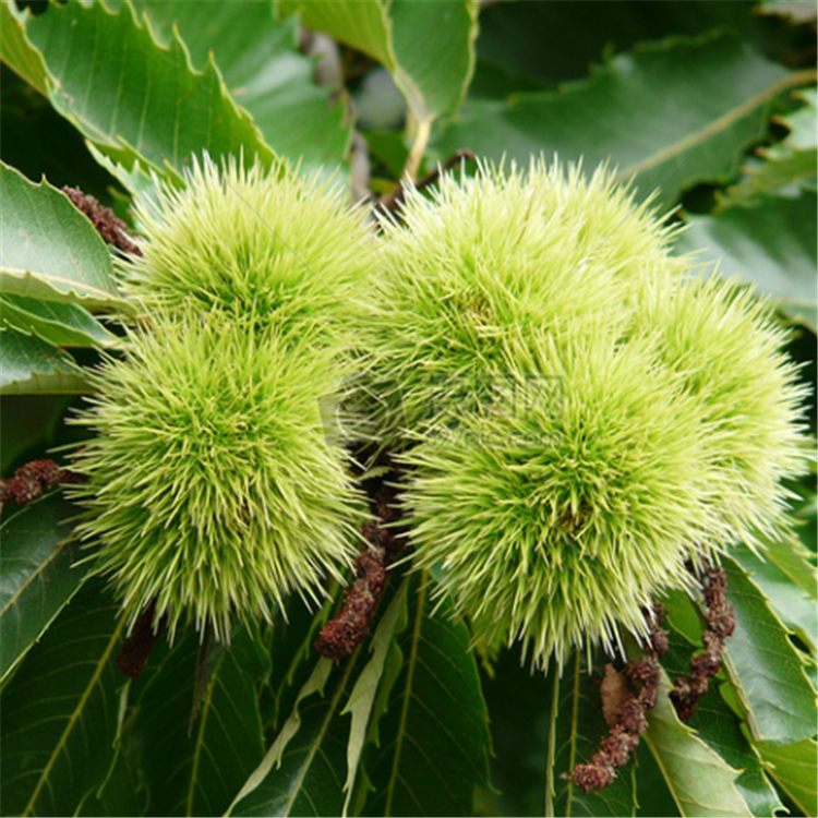 板栗是殼斗科(山毛櫸科)栗屬中的喬木或灌木總稱,約有7-9種。我國一般分為2種:******板栗和雜交改良板栗。我國普遍種植的是雜交培養(yǎng)后的改良品種,因個大、味甜、抗病性強(qiáng)被我國廣泛種植。板栗原生于北半球溫帶地區(qū),大部分板栗樹高20~40米,為落葉喬木,只有少數(shù)是灌木。各種板栗樹都結(jié)有可食用的堅(jiān)果,單葉、橢圓或長橢圓狀,長10~30厘米,寬4~10厘米,邊緣有刺毛狀齒。雌雄同株,雄花為直立柔荑花序,雌花單獨(dú)或數(shù)朵生于總苞內(nèi)。堅(jiān)果包藏在密生尖刺的總苞內(nèi),總苞直徑5~11厘米,一個總苞內(nèi)有1~7個堅(jiān)果。花期5~6月,果熟期9~10月。