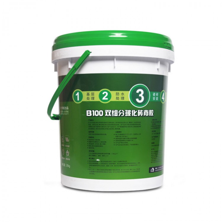 詳細信息 東方雨虹防水涂料廚房浴室陽臺通用玻化磚背膠B100雙組份背涂材料成都供應(yīng)