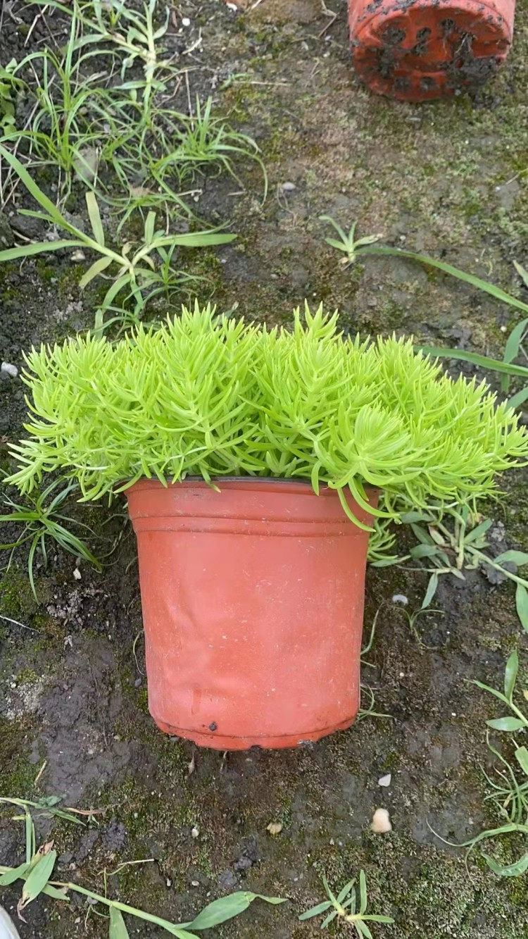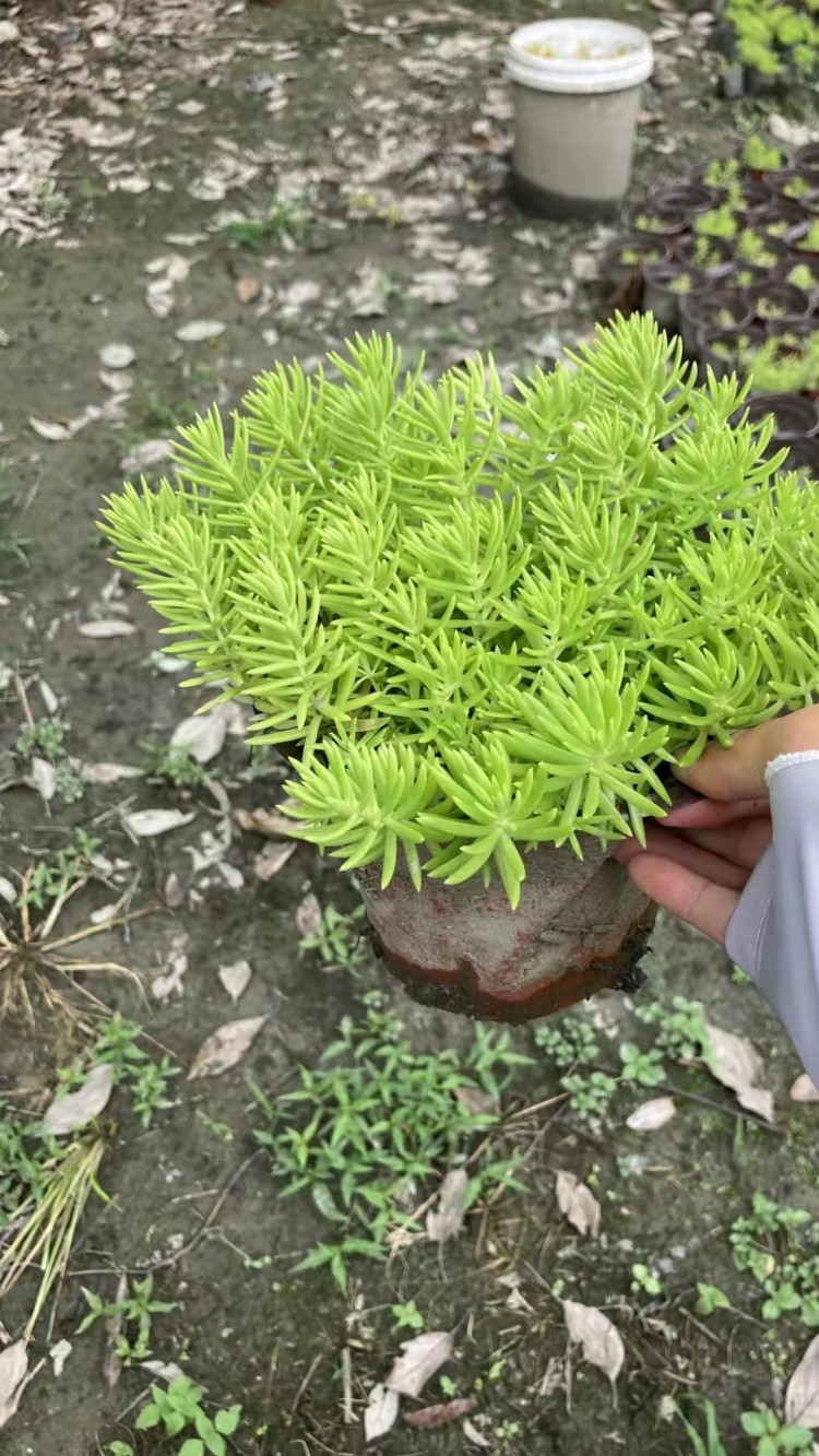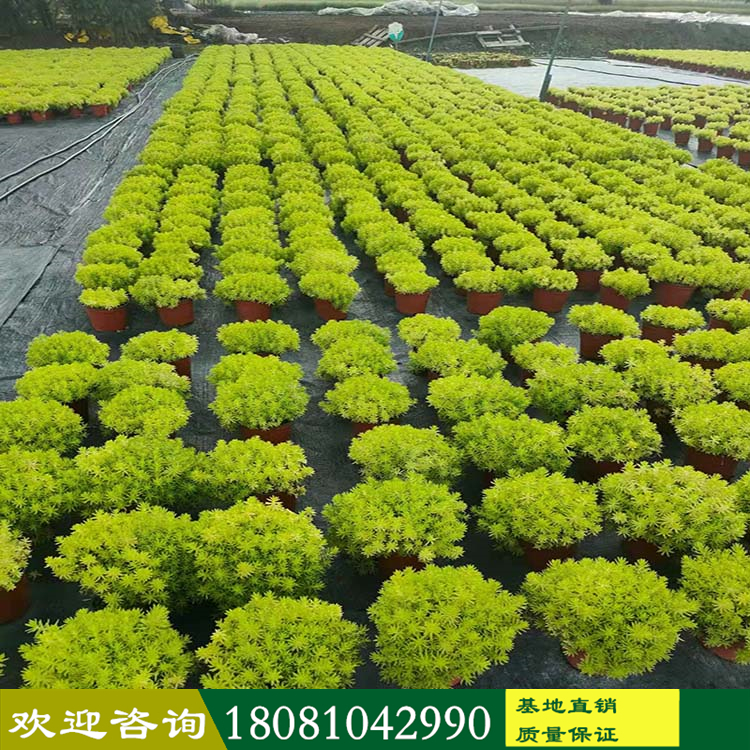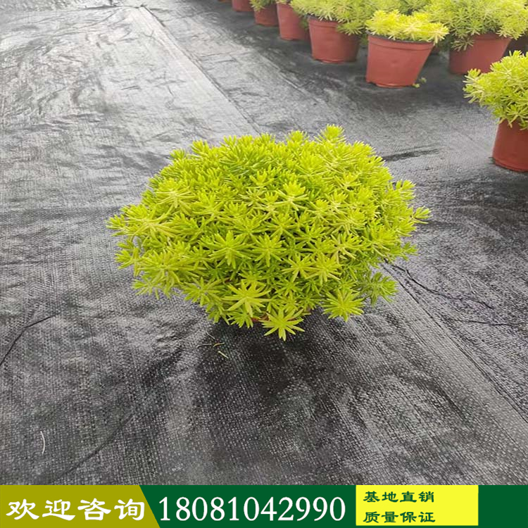 四川苗木基地 佛甲草杯苗廠家 溫江多年生草本花卉 品種齊全 一站購買 盤苗佛甲草 詳細信息 佛甲草(學(xué)名:Sedum lineare Thunb.)是景天科多年生草本植物,無毛。莖高10-20厘米。3葉輪生,少有4葉輪或?qū)ι?,葉線形,先端鈍尖,基部無柄,有短距。花序聚傘狀,頂生,疏生花,中央有一朵有短梗的花;萼片線狀披針形。蓇葖略叉開,花柱短;種子小?;ㄆ?-5月,果期6-7月