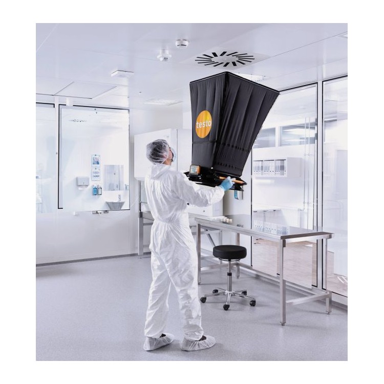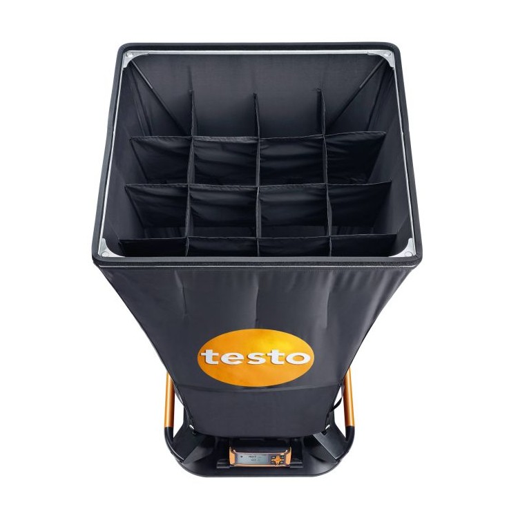 渦流出風(fēng)口需要頻繁地進(jìn)行風(fēng)量測(cè)量。由于出風(fēng)口湍流的影響,風(fēng)速經(jīng)常不能準(zhǔn)確測(cè)量。testo 420 風(fēng)量罩可有效減少測(cè)量誤差。內(nèi)置氣流整流柵可有效降低渦流,均勻氣流,從而實(shí)現(xiàn)風(fēng)量在 80~3,500 m3/h之間精準(zhǔn)測(cè)量。