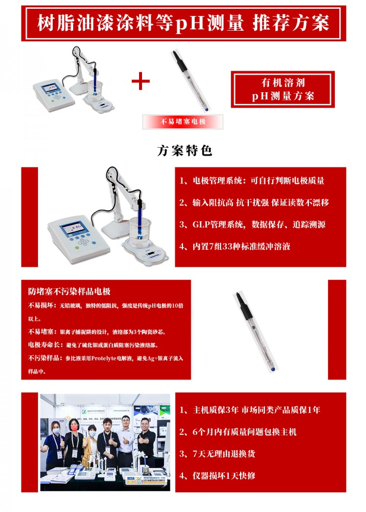 4組12種pH標準液,一鍵標定,5點校準,自動識別、校準